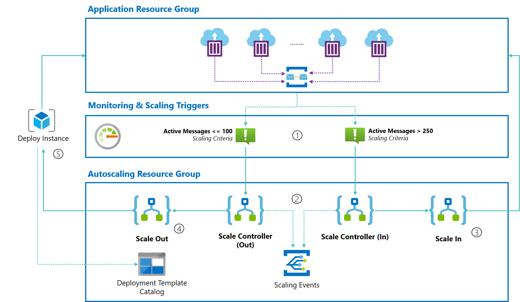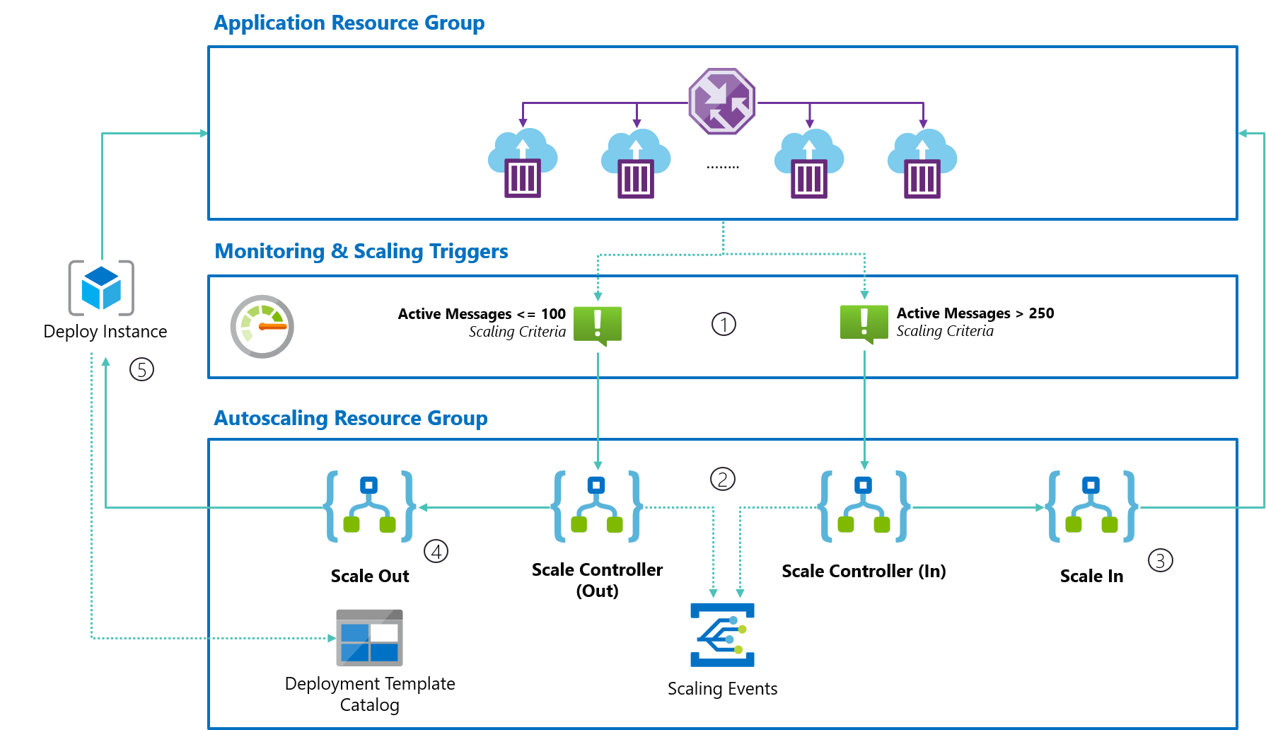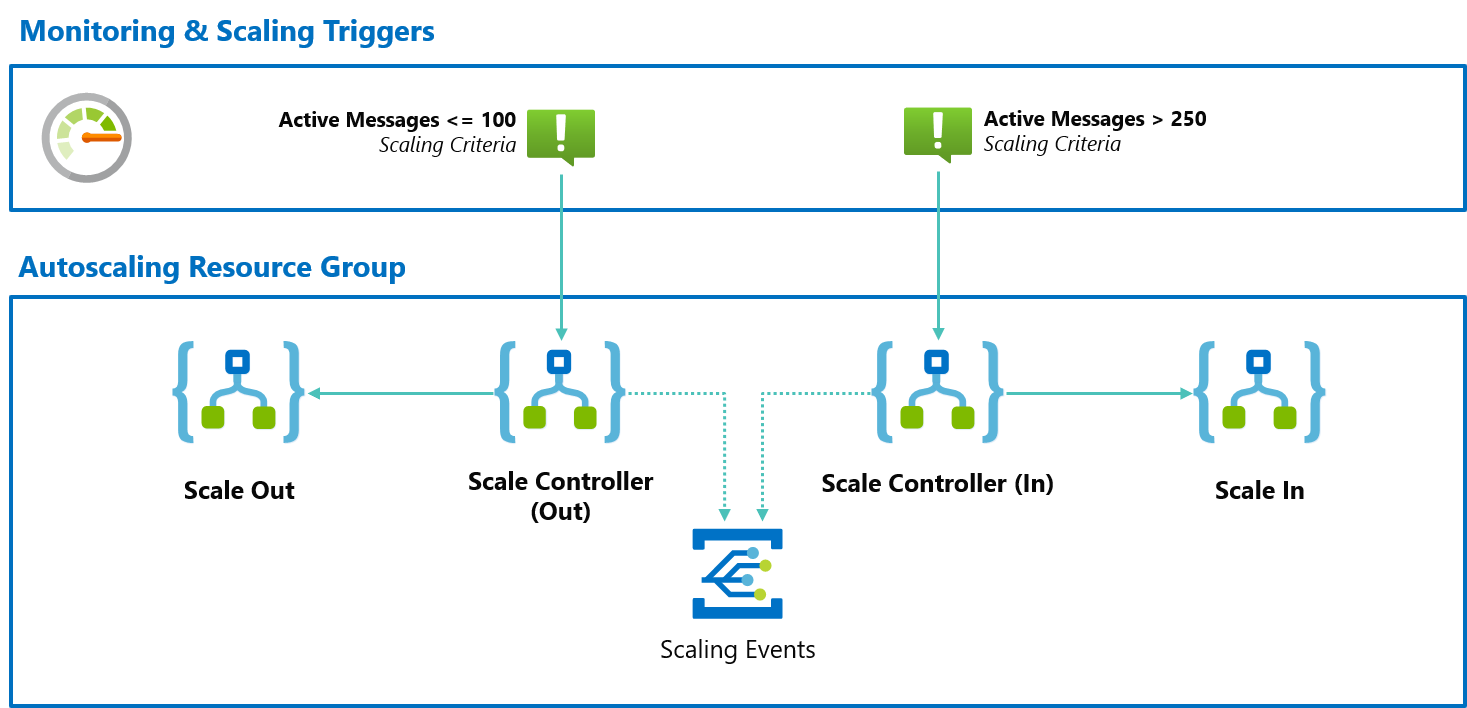 - Scale-Out Trigger - Defines the criteria for your application to scale out when appropriate, for example "when active message count > 250"