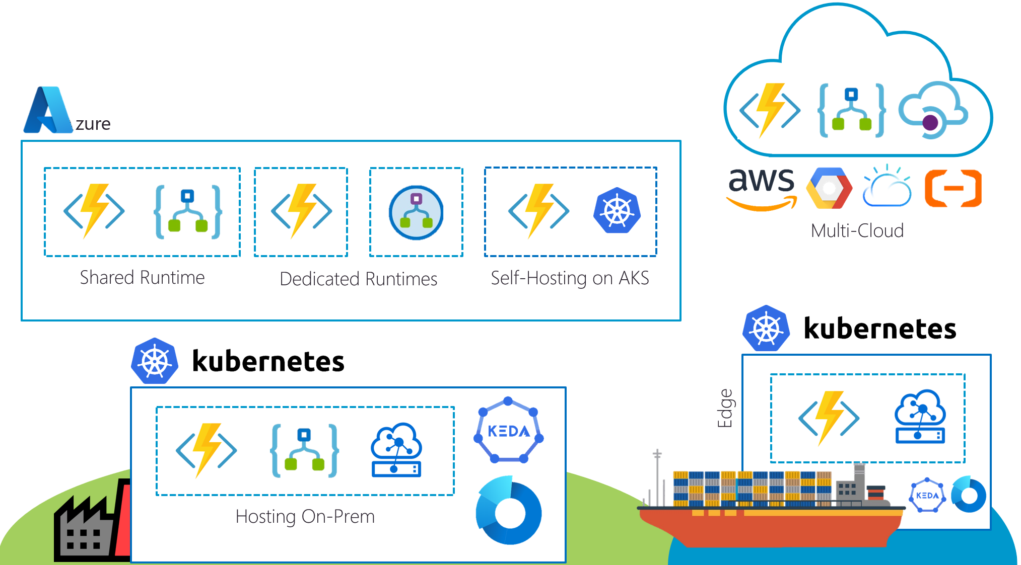 This means that you can easily run all these technologies outside of Azure already, on any cloud, on-premises, or the edge, and use the same paradigms to meet your business needs: