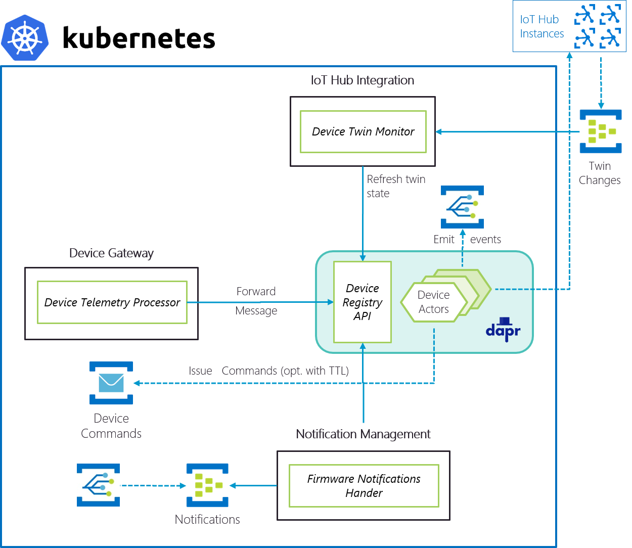 In a POC that Iāve done to play around with it, Iām using them to build a custom cloud gateway for IoT devices in the field that are virtually represented in the cluster with a device actor: